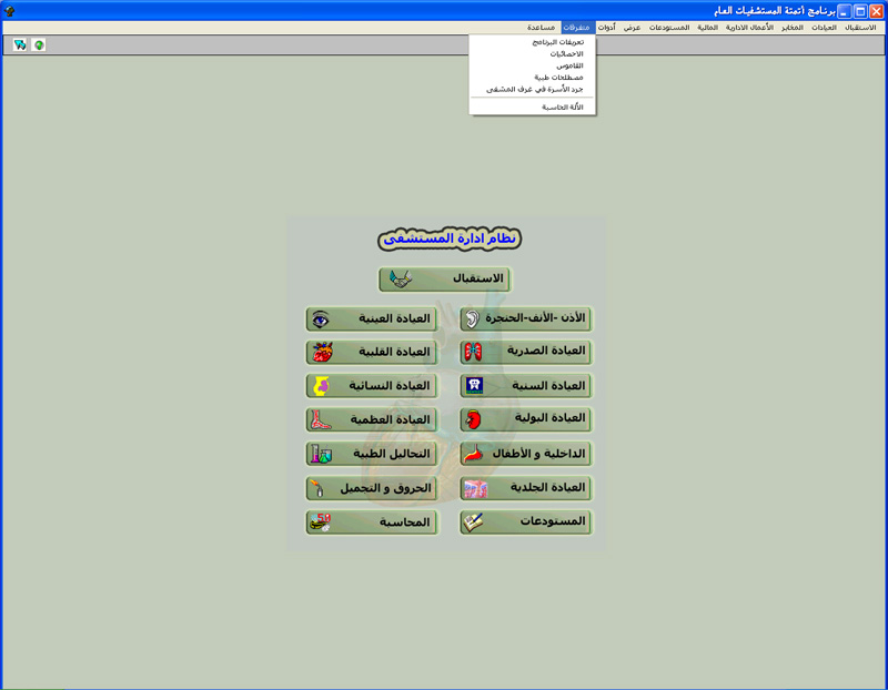 البرنامج مصمم للمشافي و المستوصفات و العيادات الشاملة ليقوم مساعدتهم على أرشفة و طباعة معلومات المرضى و معالجات و الصور الشعاعية و التحاليل النخبرية و محاسبتها :