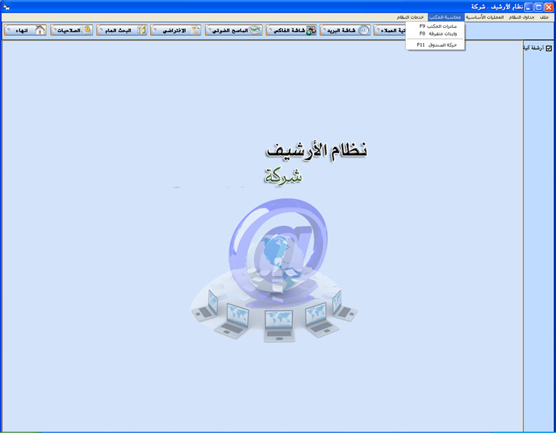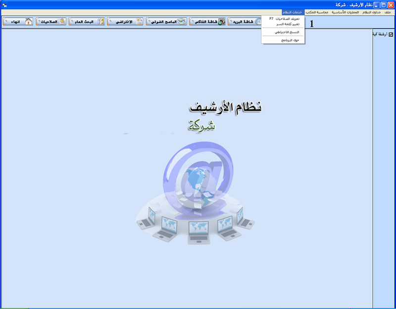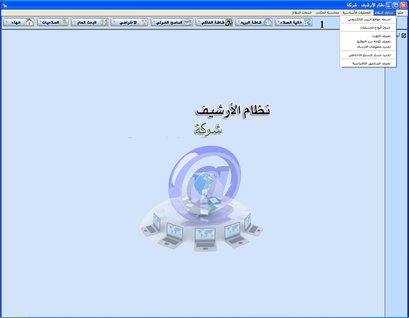 البرنامج مصمم ليقوم بأرشفة جميع العمليات الخاصة بعميل أو شركة و طباعة معلومات الأرشيف من صور و ملفات و بريد الكتروني و فاكس ....