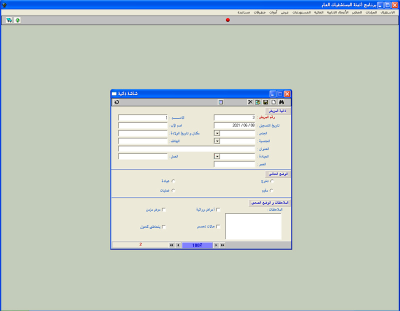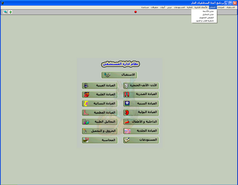 البرنامج مصمم للمشافي و المستوصفات و العيادات الشاملة ليقوم مساعدتهم على أرشفة و طباعة معلومات المرضى و معالجات و الصور الشعاعية و التحاليل النخبرية و محاسبتها :